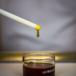 KRYSTALIZACJA ( osad biały na dnie) – kiedy dominujący składnik – w tym przypadku CBD lub CBG – zostanie wystawiony na niską temperaturę lub nagłe zmiany termiczne, prowadząc do wytrącenia się w postaci stałej. Aby przeciwdziałać temu procesowi, zaleca się podgrzanie produktu powyżej temperatury 70°C i dokładne wymieszanie. Godzinne podgrzewanie nie zaszkodzi jakości produktu, jednak w niższych temperaturach CBD lub CBG nie rozpuszczą się. Zjawisko krystalizacji obserwuje się zwłaszcza w olejkach o wysokim stężeniu aktywnego składnika, typowo przekraczającym 20%.