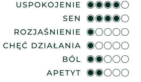 - CBD: 7% – działanie relaksacyjne i wspierające dobre samopoczucie.