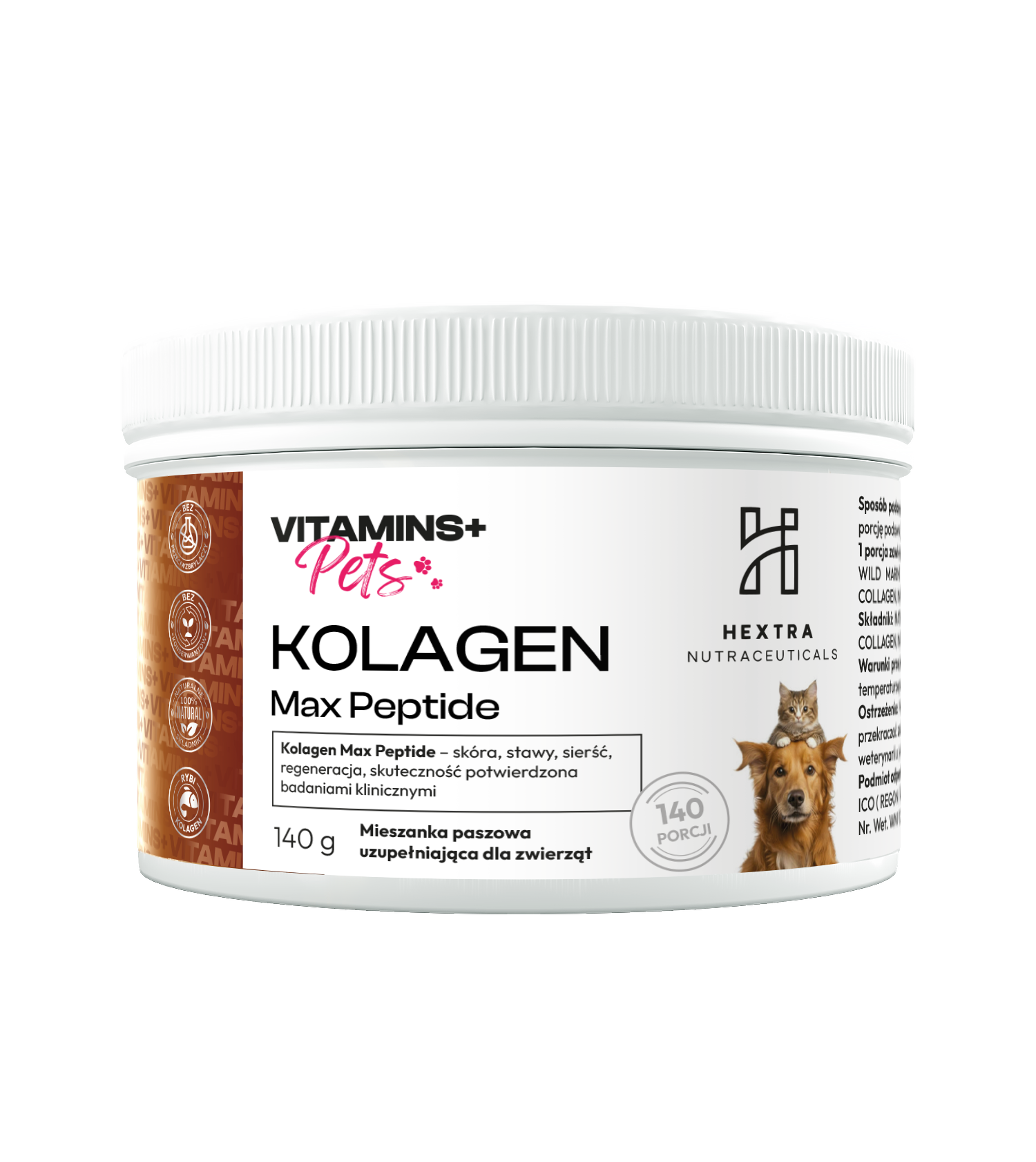 Kolagen Max Peptide PETS 140 g – kolagen rybi dla zwierząt na stawy, skórę, sierść i regenerację