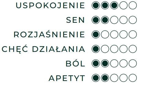 - CBD: Kannabidiol znany ze swoich właściwości relaksacyjnych, przeciwbólowych i przeciwlękowych.