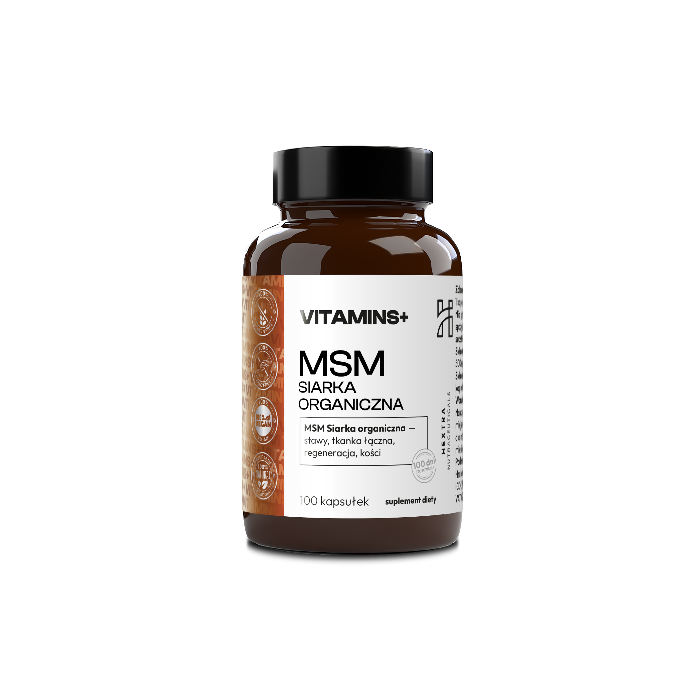 Składniki: MSM (metylosulfonylometan), celuloza (otoczka kapsułki).
