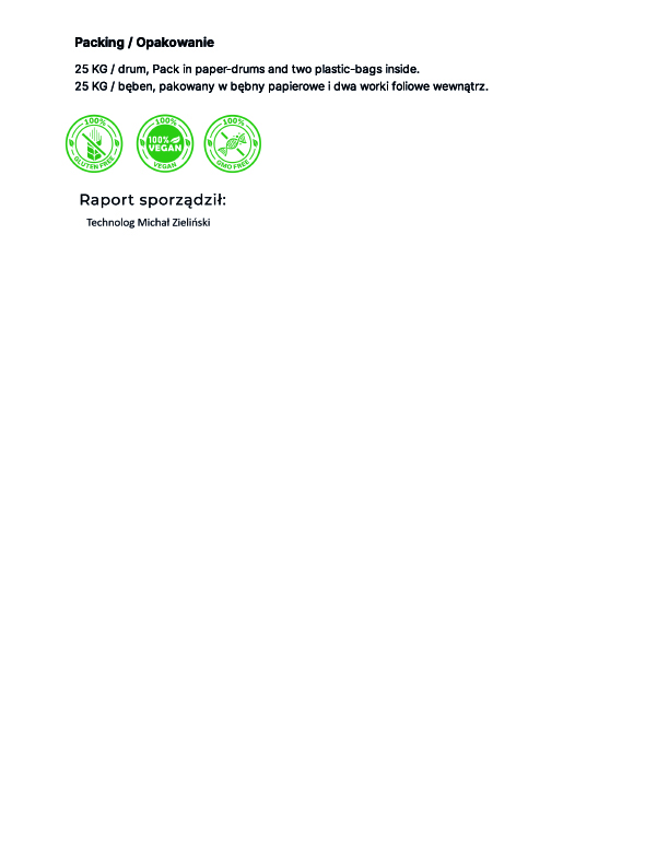 Cechy produktu: bezsmakowy, bezzapachowy, kapsułki roślinne, forma podawania – kapsułki